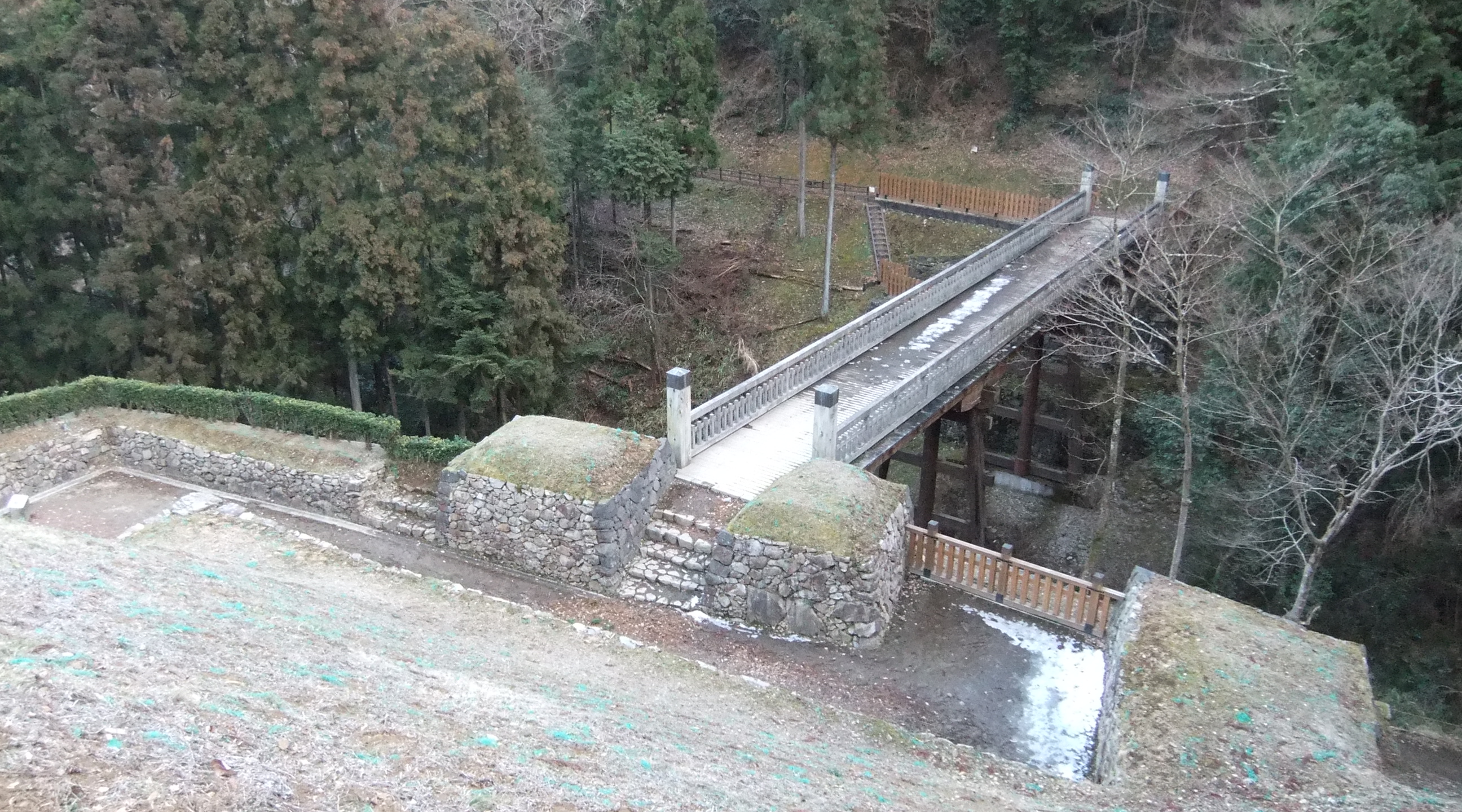大手道から新曳橋と櫓門方面