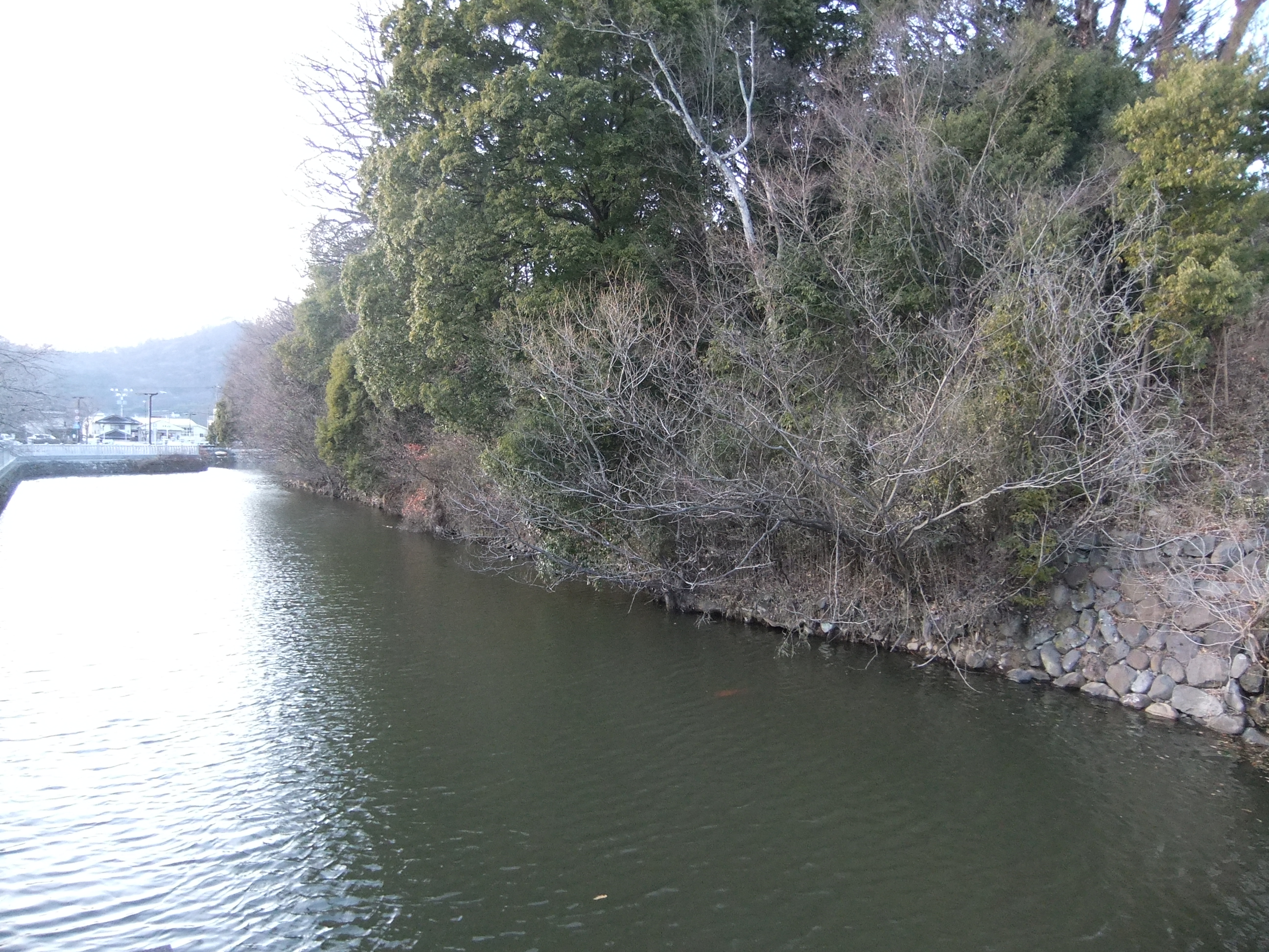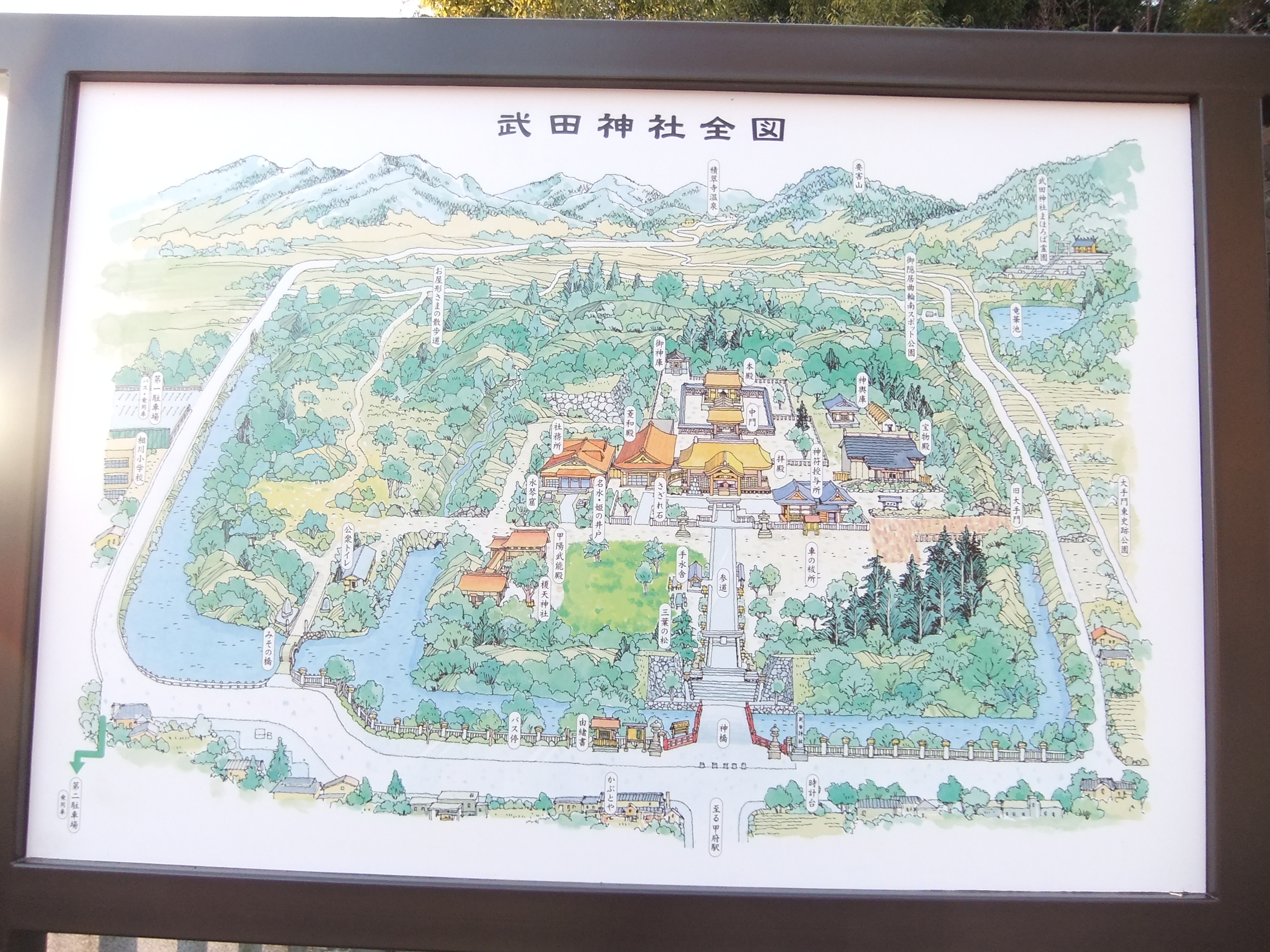 今は神社でも、元は武田氏館。城郭の様に水掘りが囲う構成。