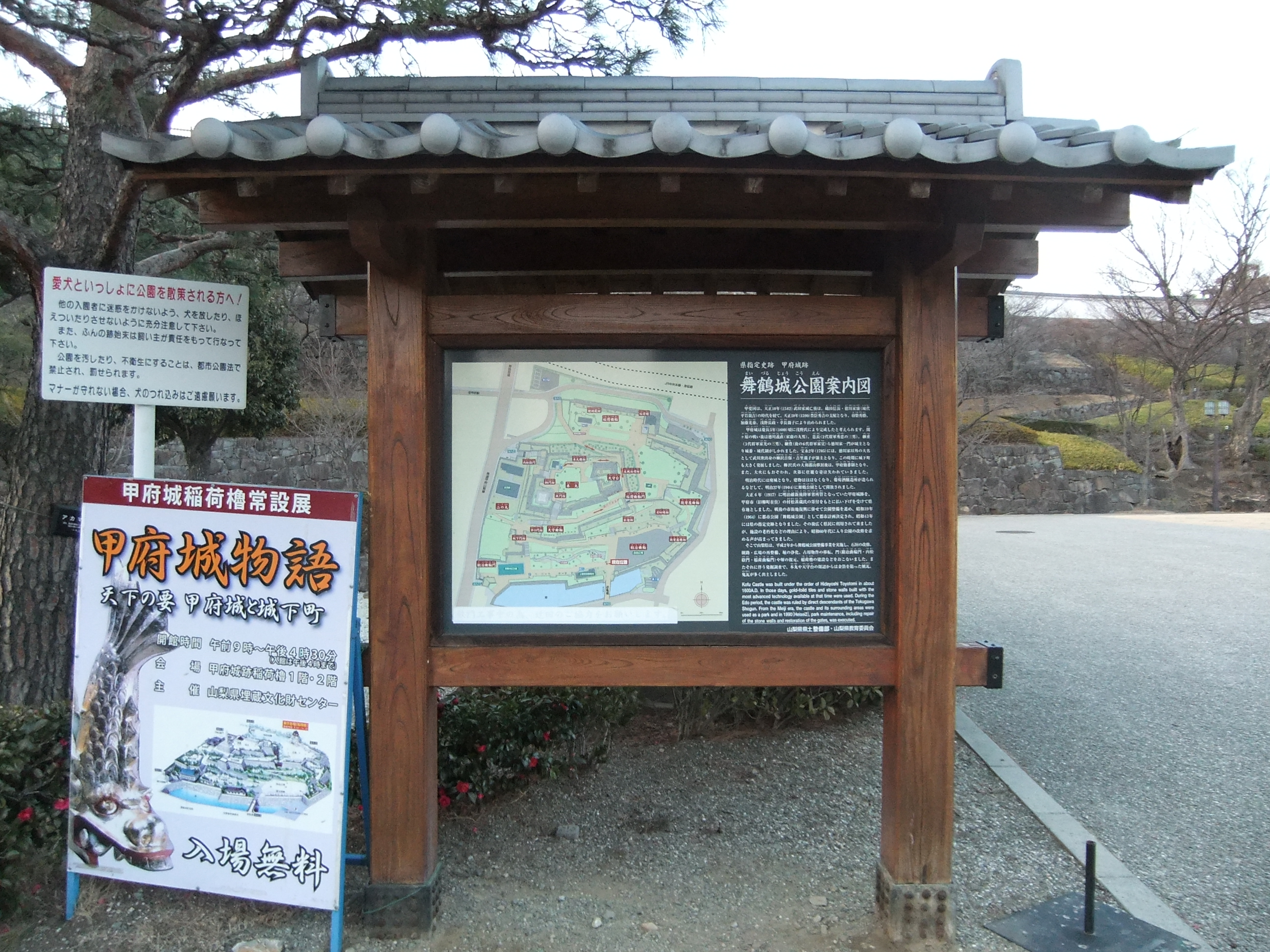 歴史公園 山手御門案内図と山手門方面 山手門の右側(手前)は堀の跡 |