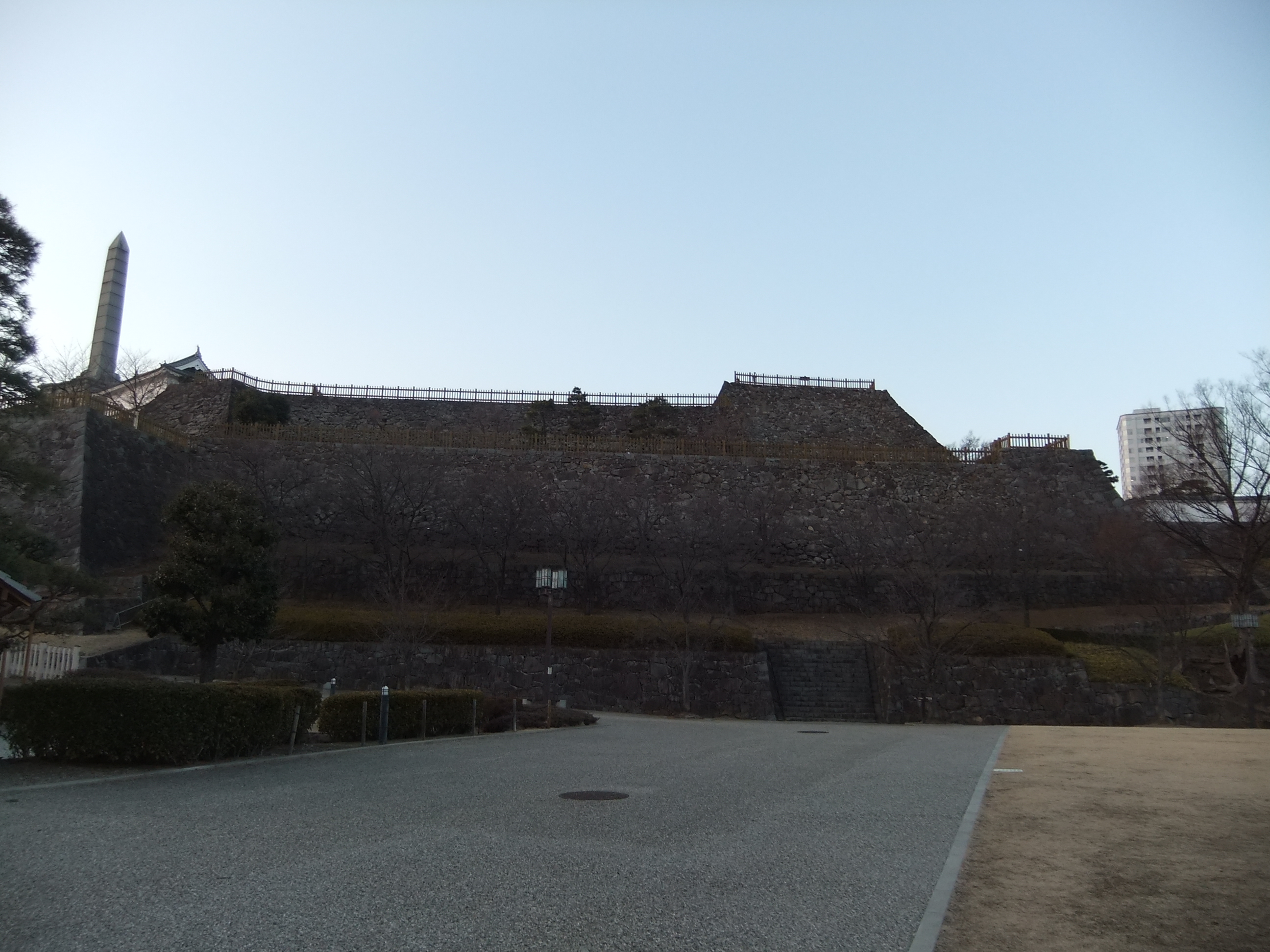 山手渡櫓門を抜けて天守台を北側から望む 「歴史公園 山手御門」と「舞鶴公園」の間から |