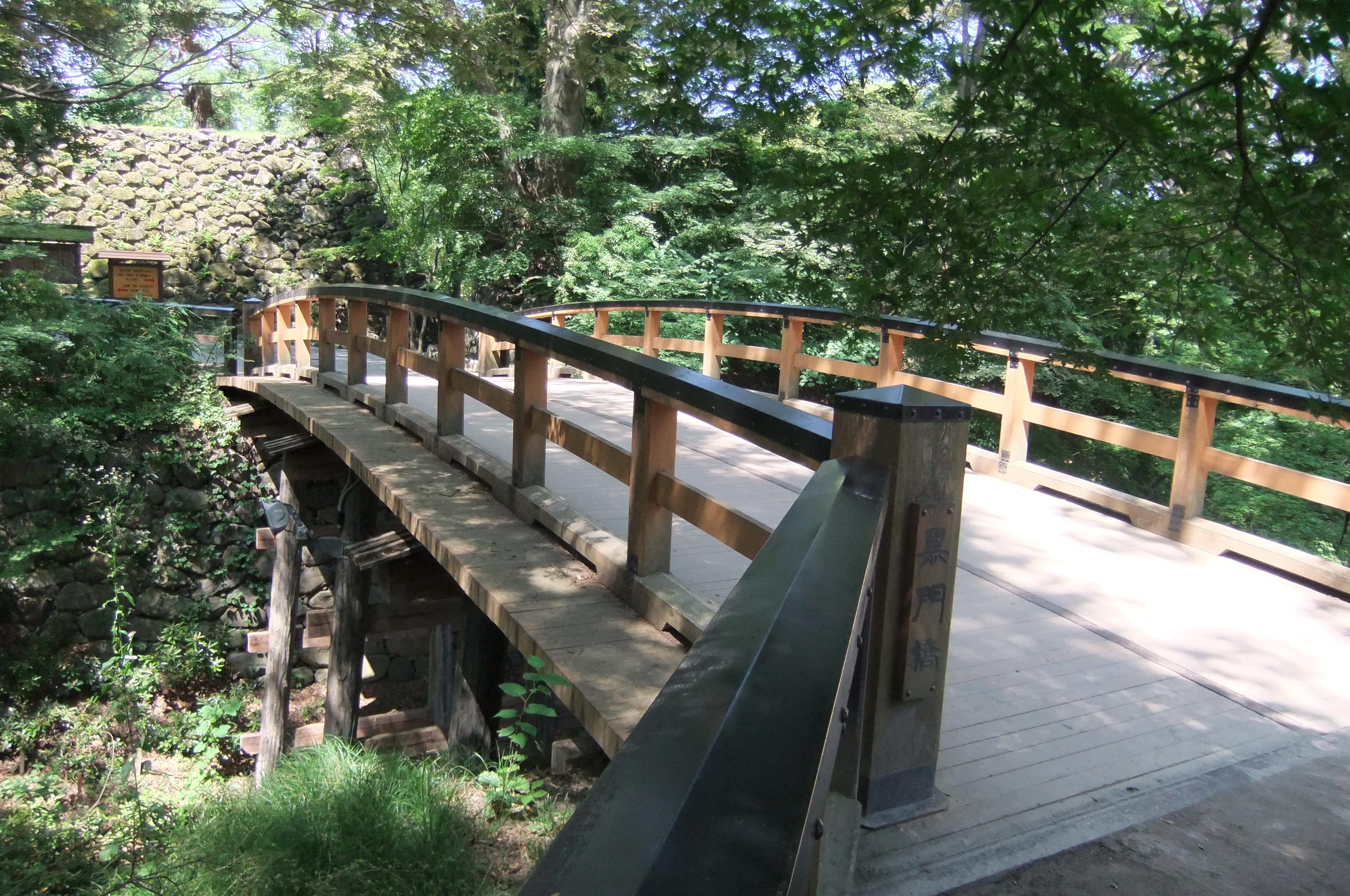 黒門橋と本丸石垣 二の丸側と本丸を横切る空堀に渡る橋 この先が本丸と馬場