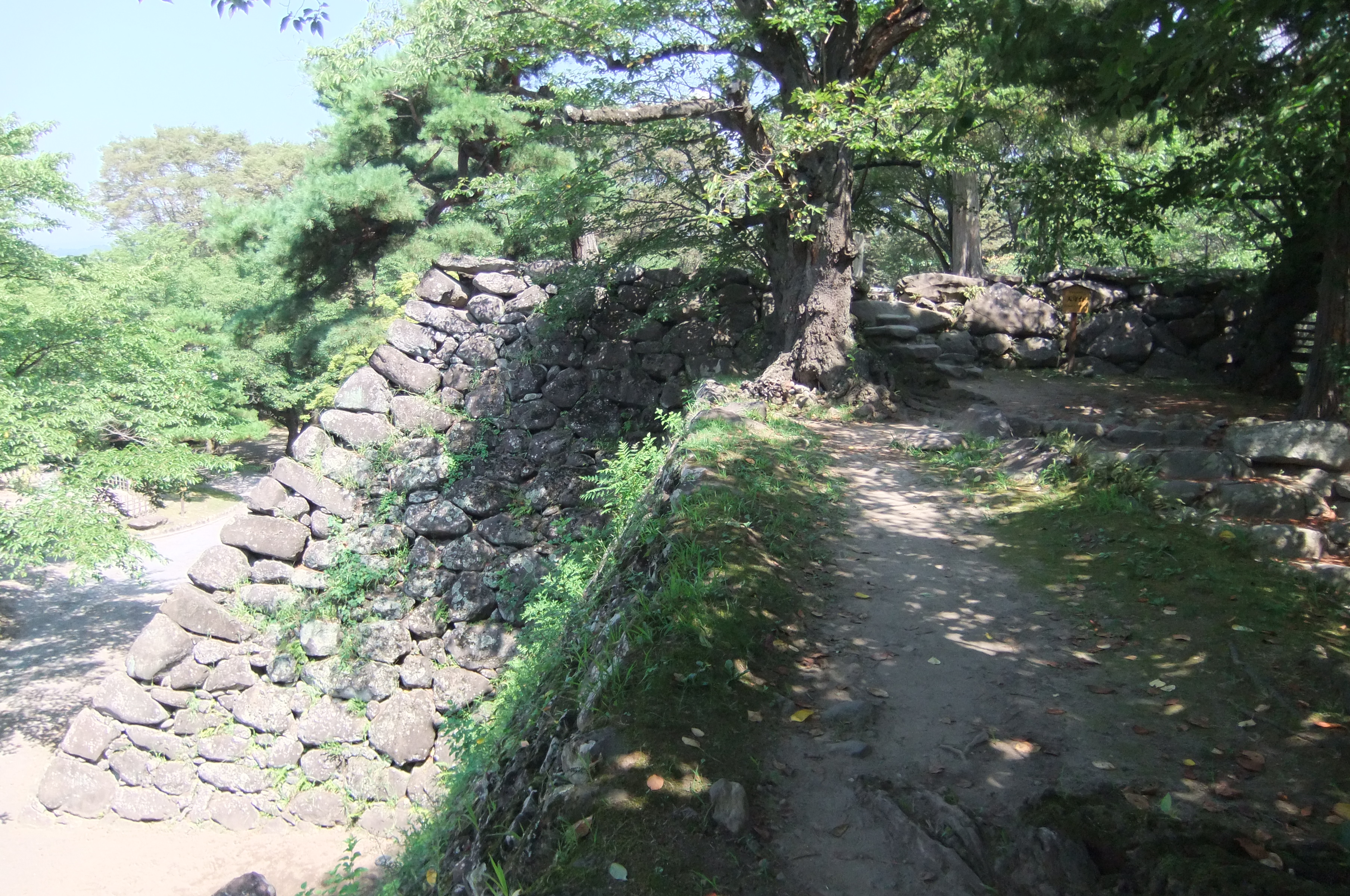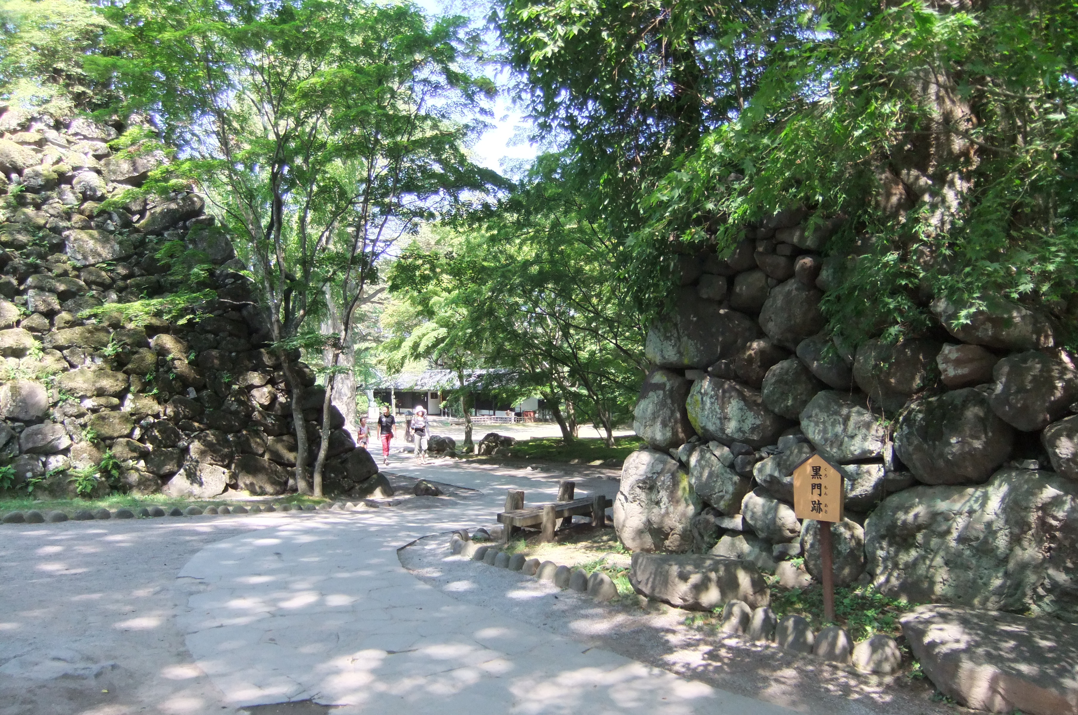 黒門付近から本丸方面 奥に見えるのが懐古神社。 向かって右側の山城館(写ってません)で、カキ氷で一休み