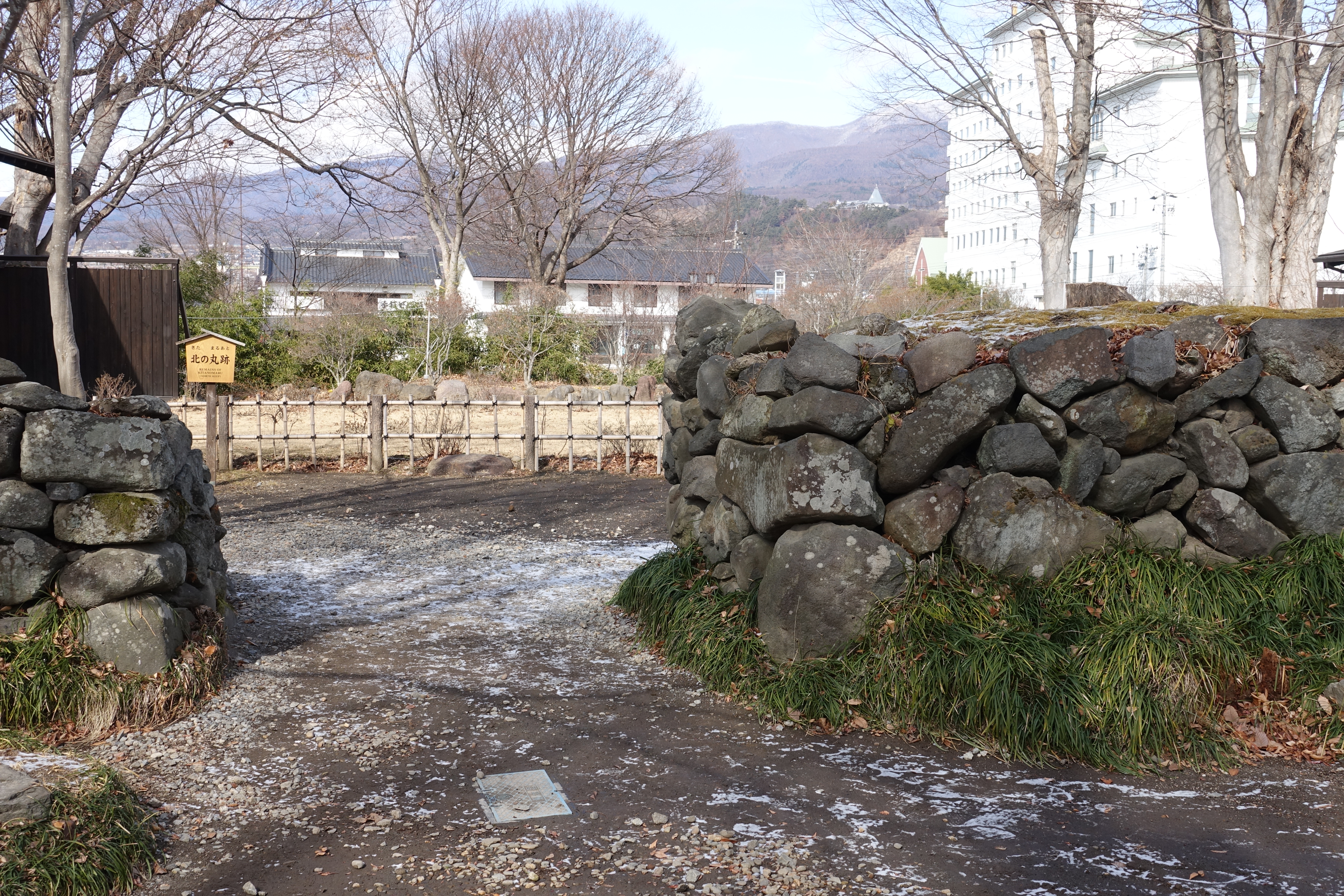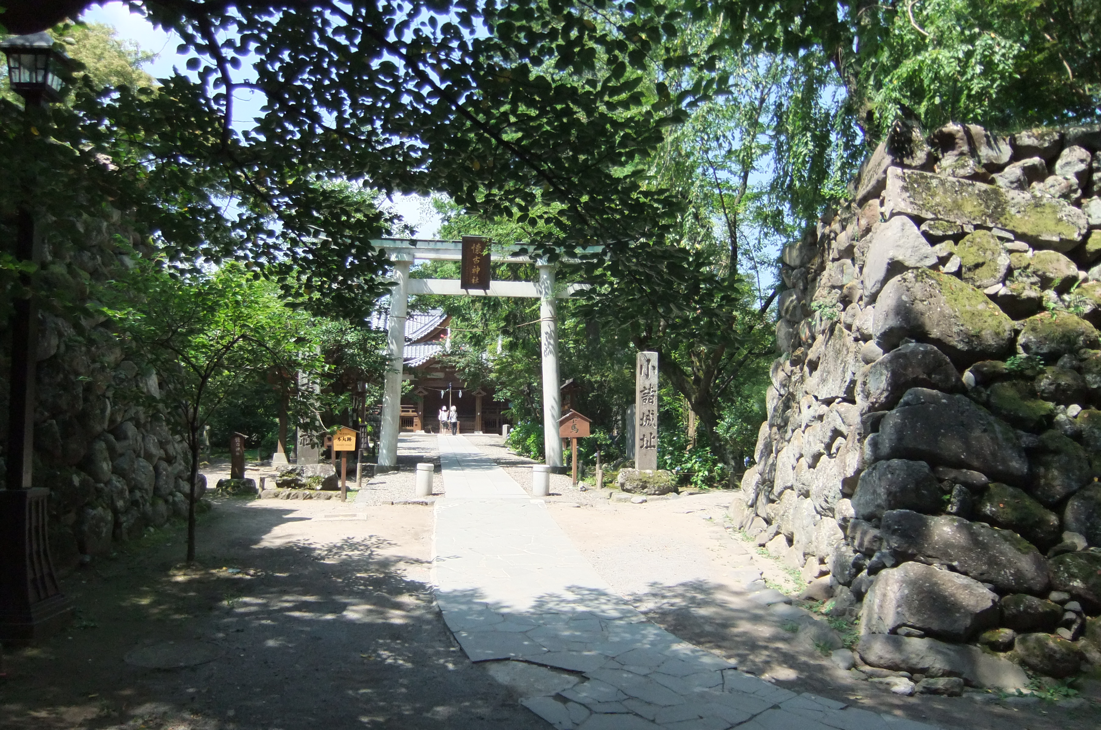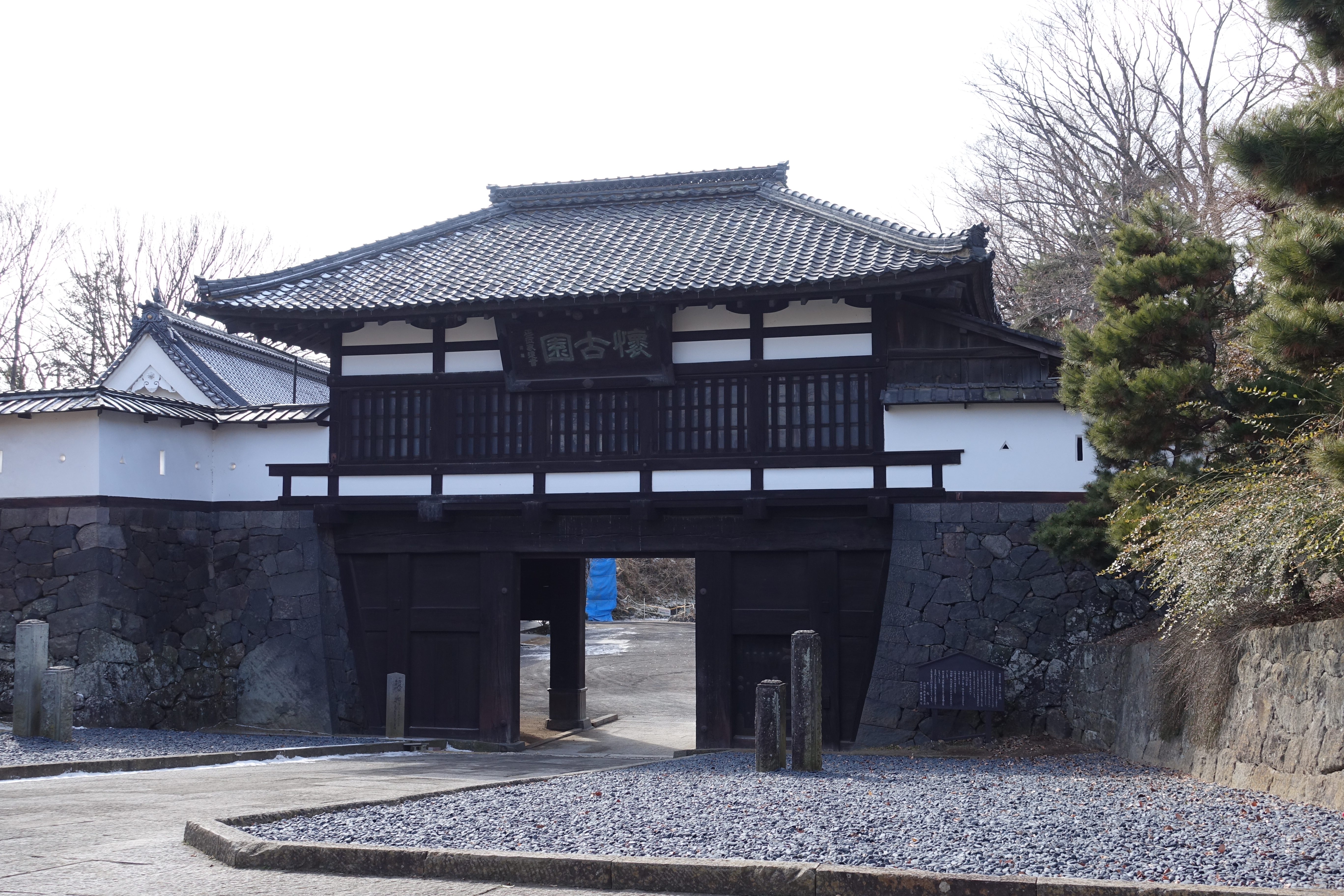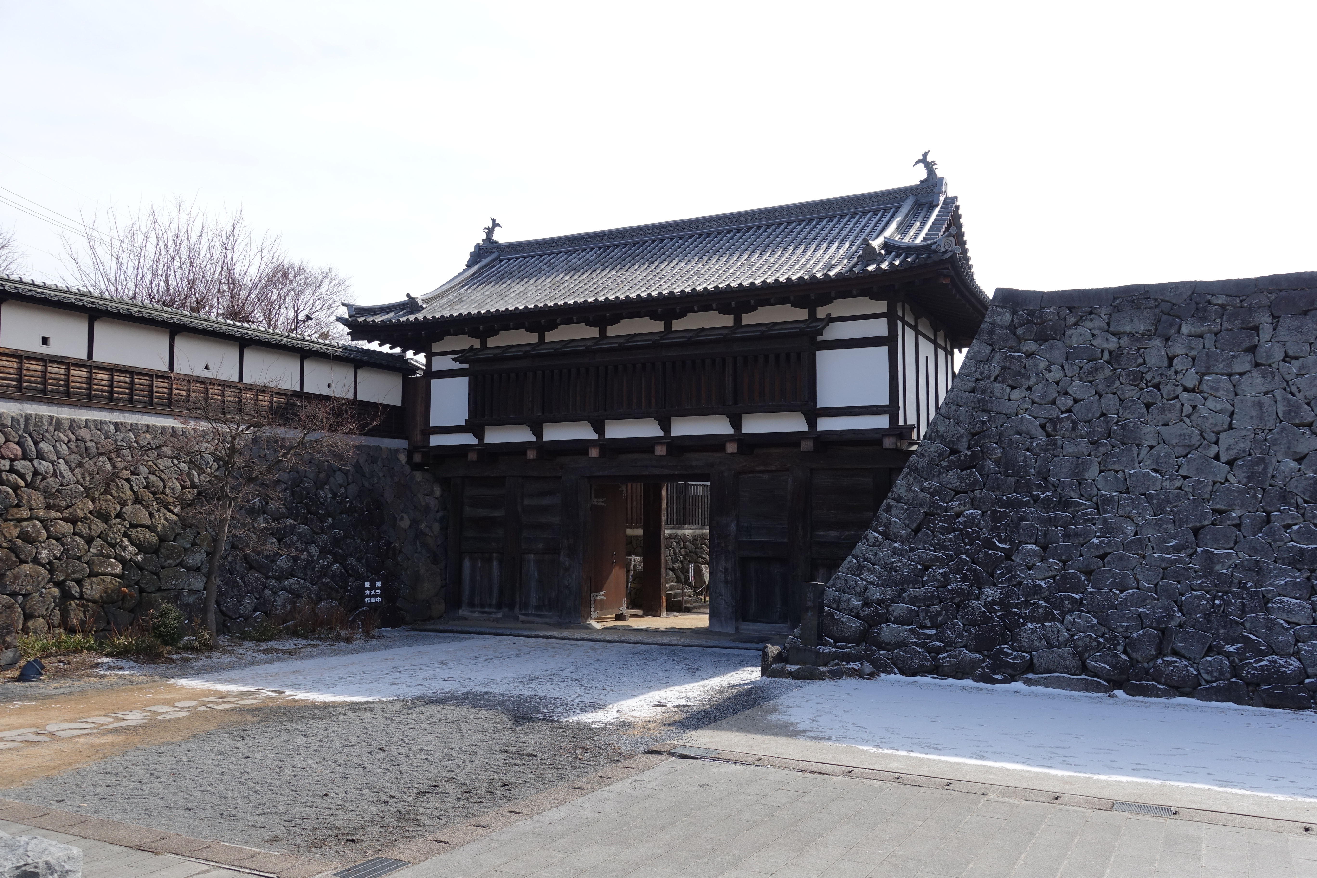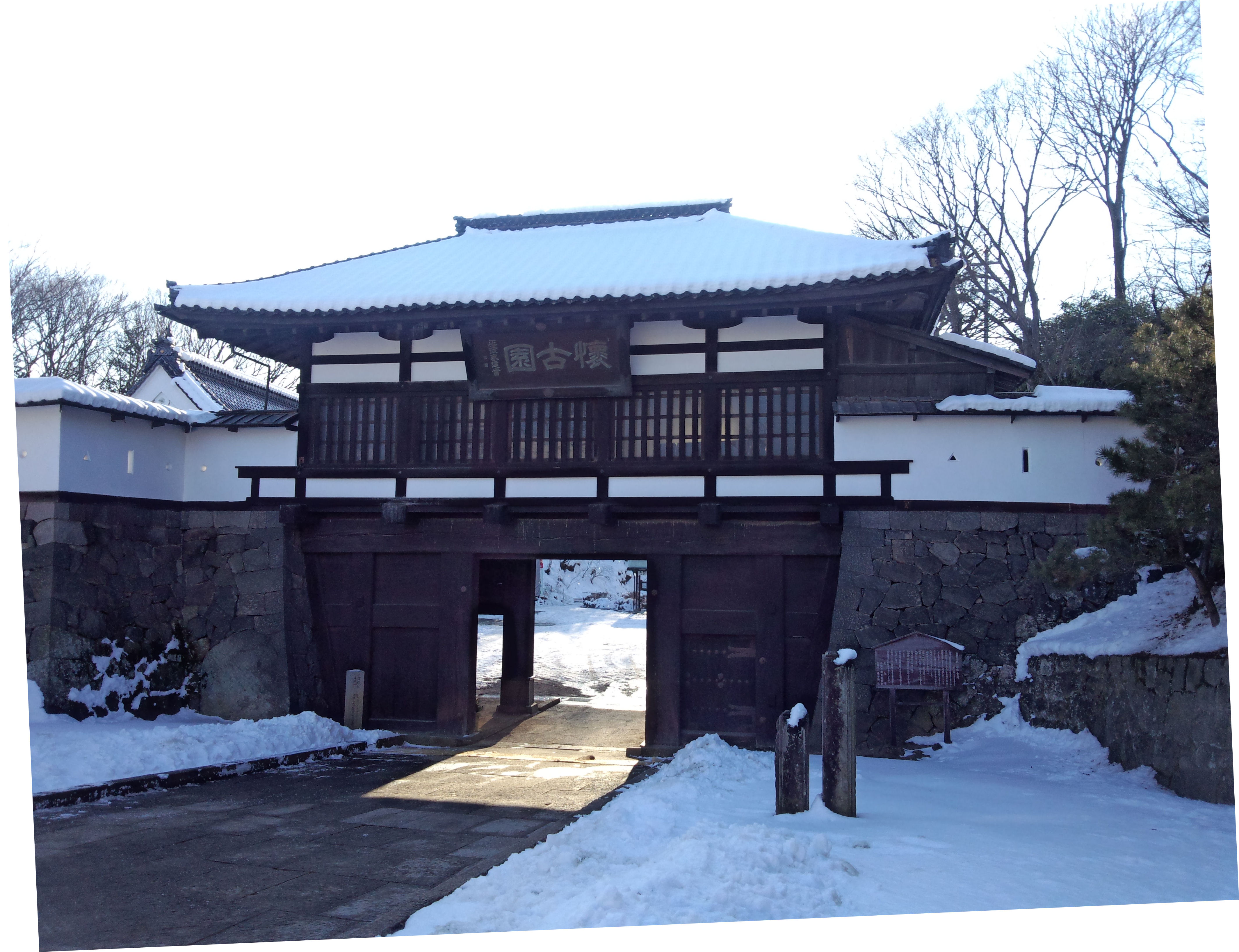 写真でよく見る懐古園の写真の三之門がこれ。 これまた、門に入る道は下り坂。