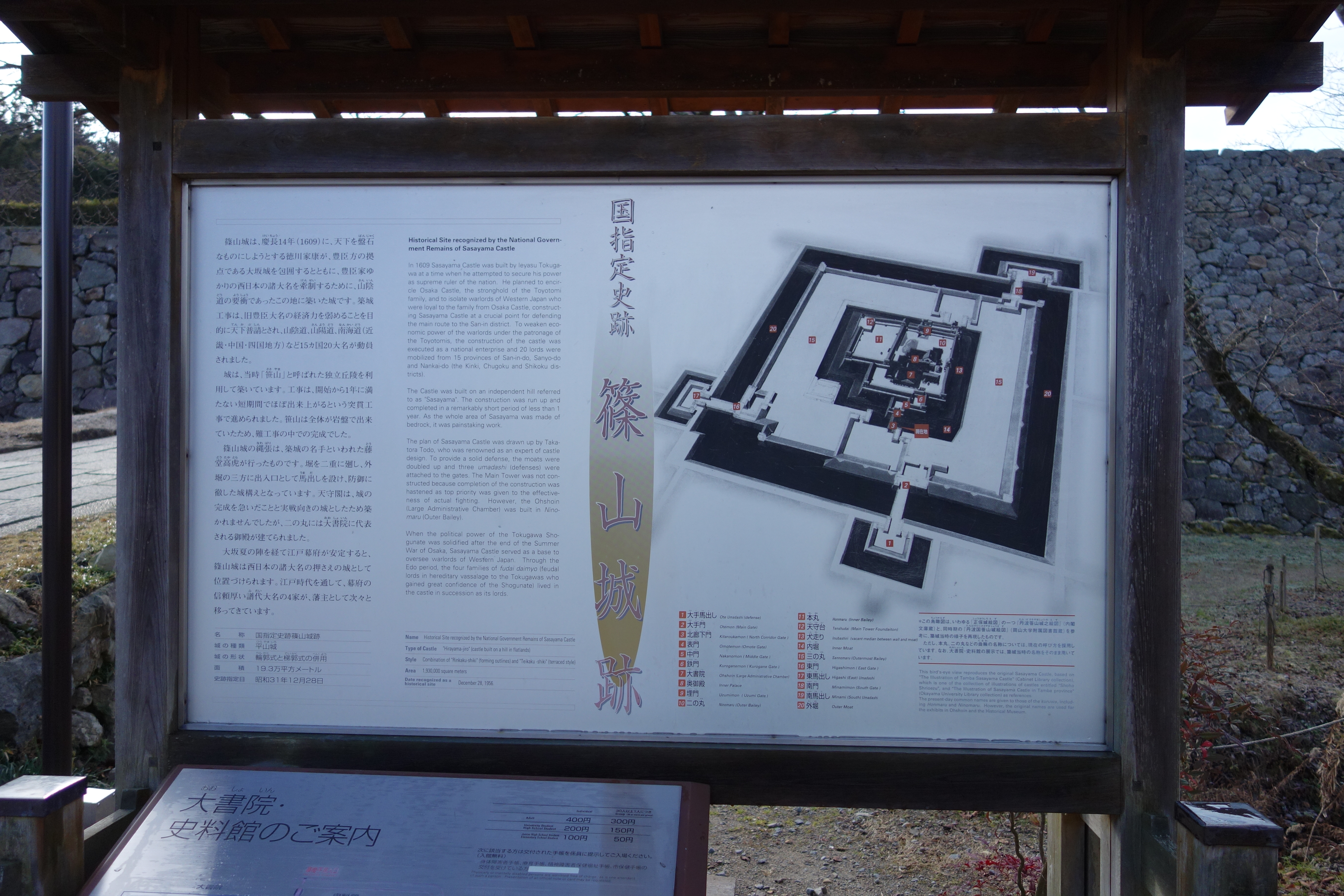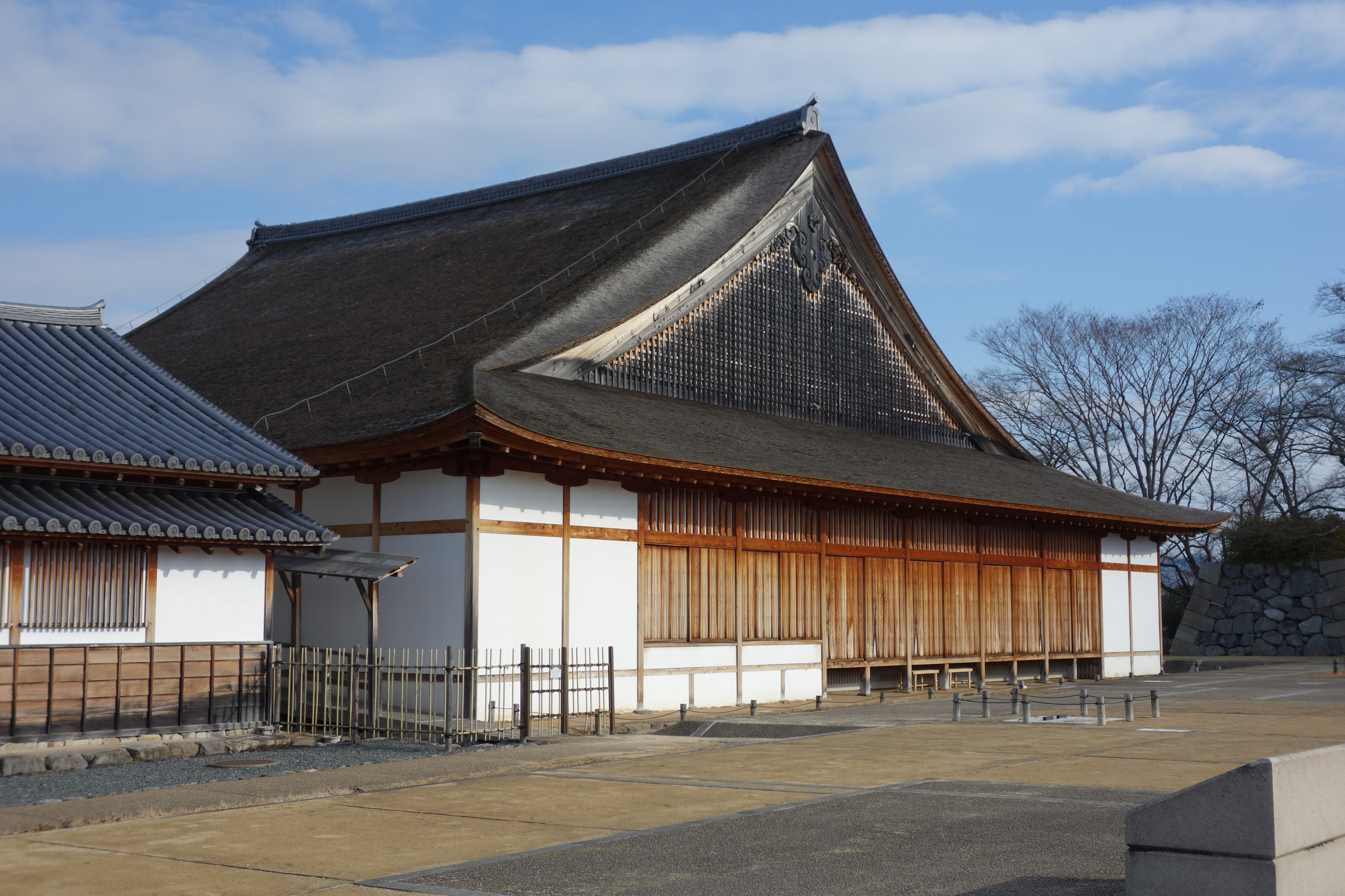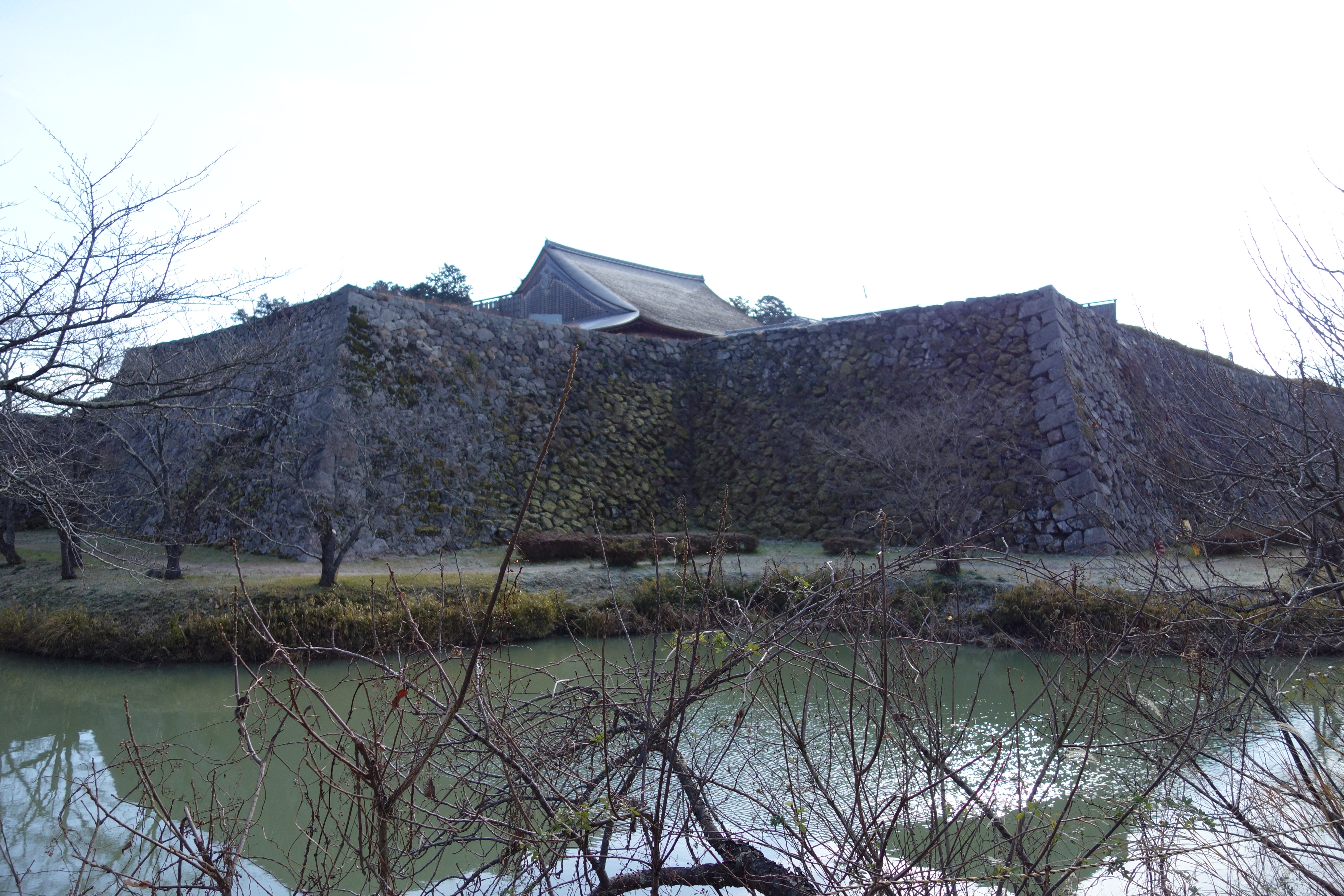 三の丸の北西側から見た二の丸と鉄門の石垣 内側には大書院の屋根 |