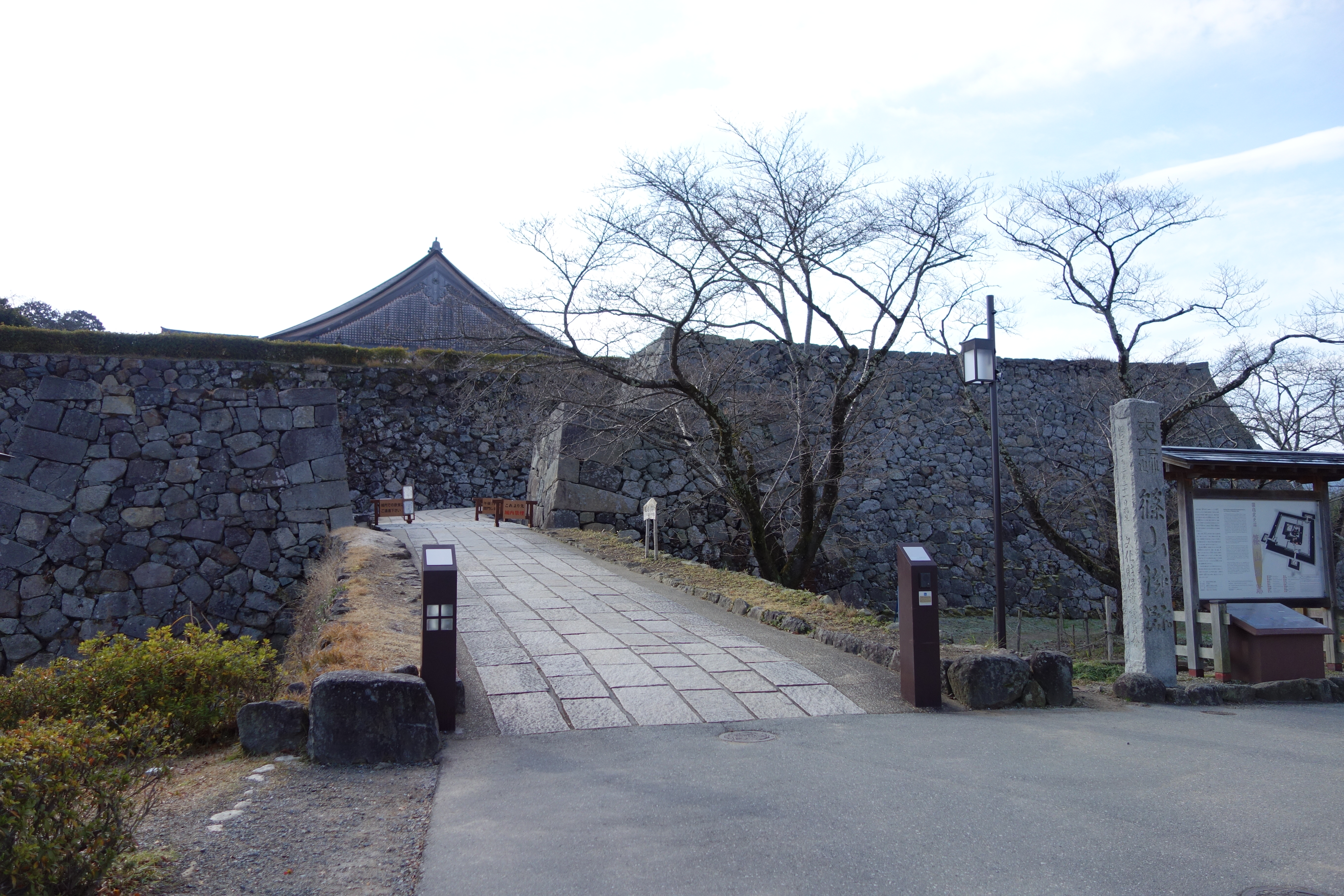 内堀を超えて二の丸へ 元は北廊下門が在ったらしいです 内堀を超えると表門、中門 |