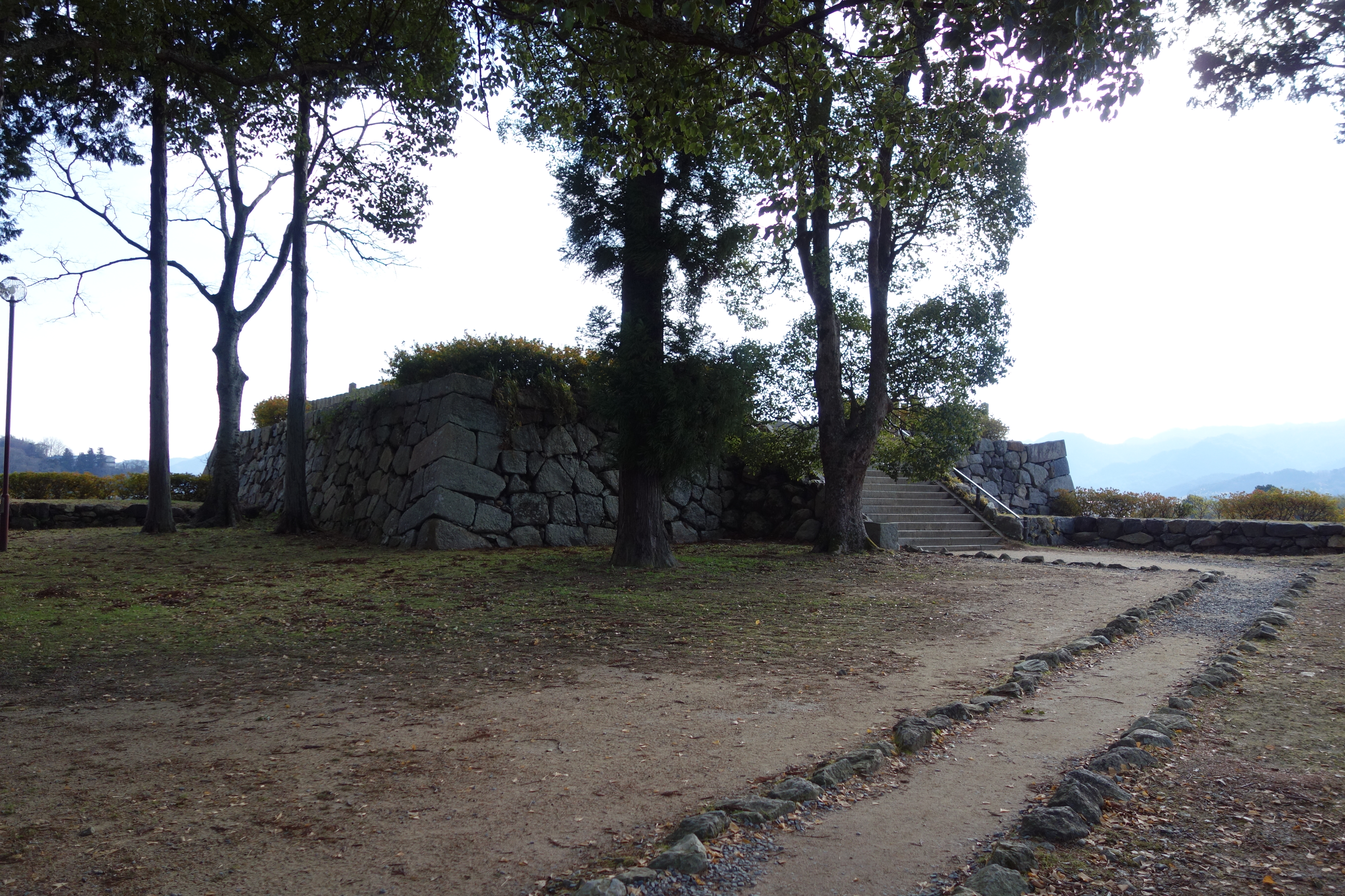 三の丸の南側から見ると左側に二の丸、右側に本丸石垣 何れも三の丸と違い立派な石垣がしっかり |