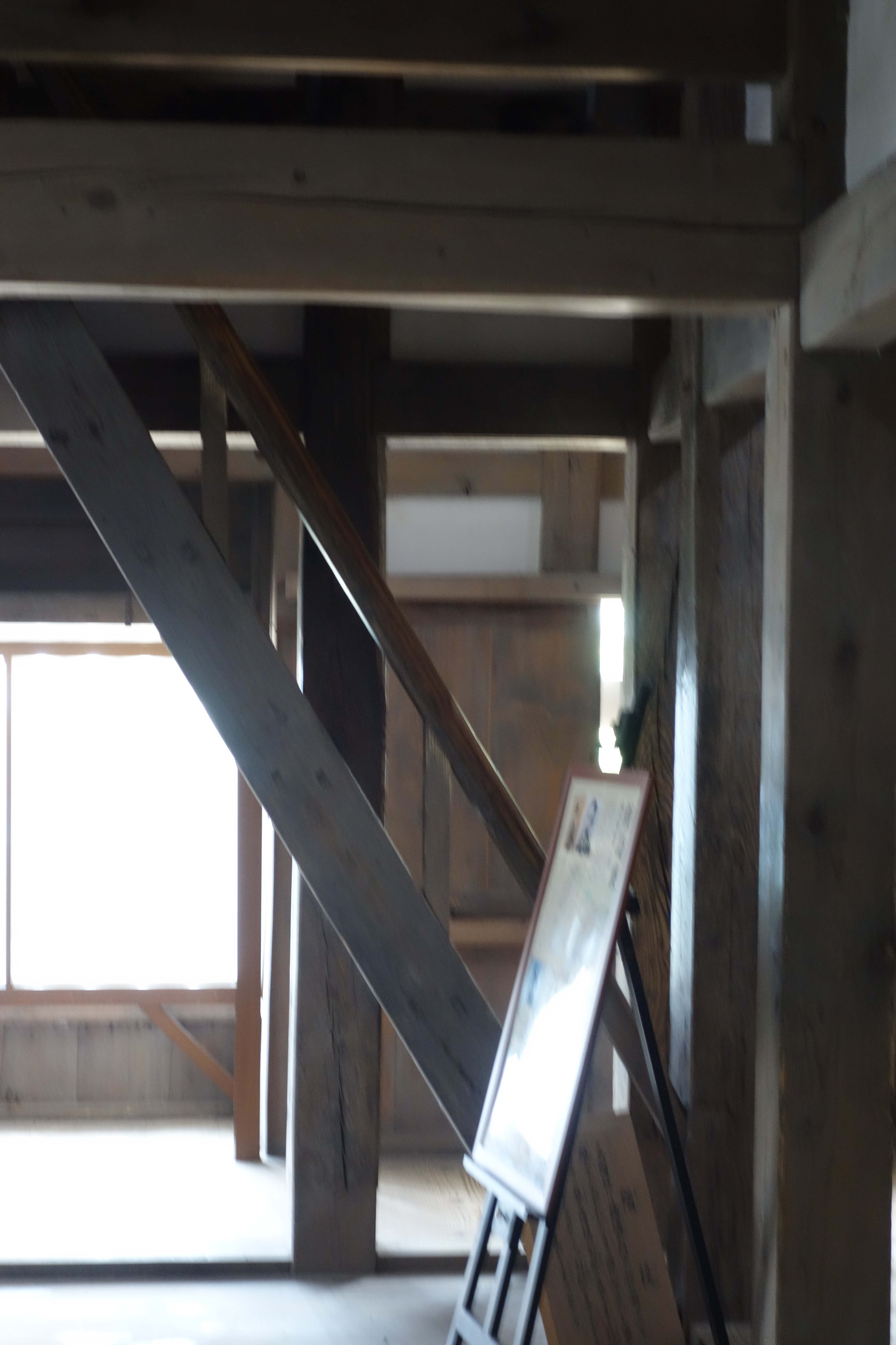 天守内部(階段) 現存天守だけあって昔ながらの急な階段 |