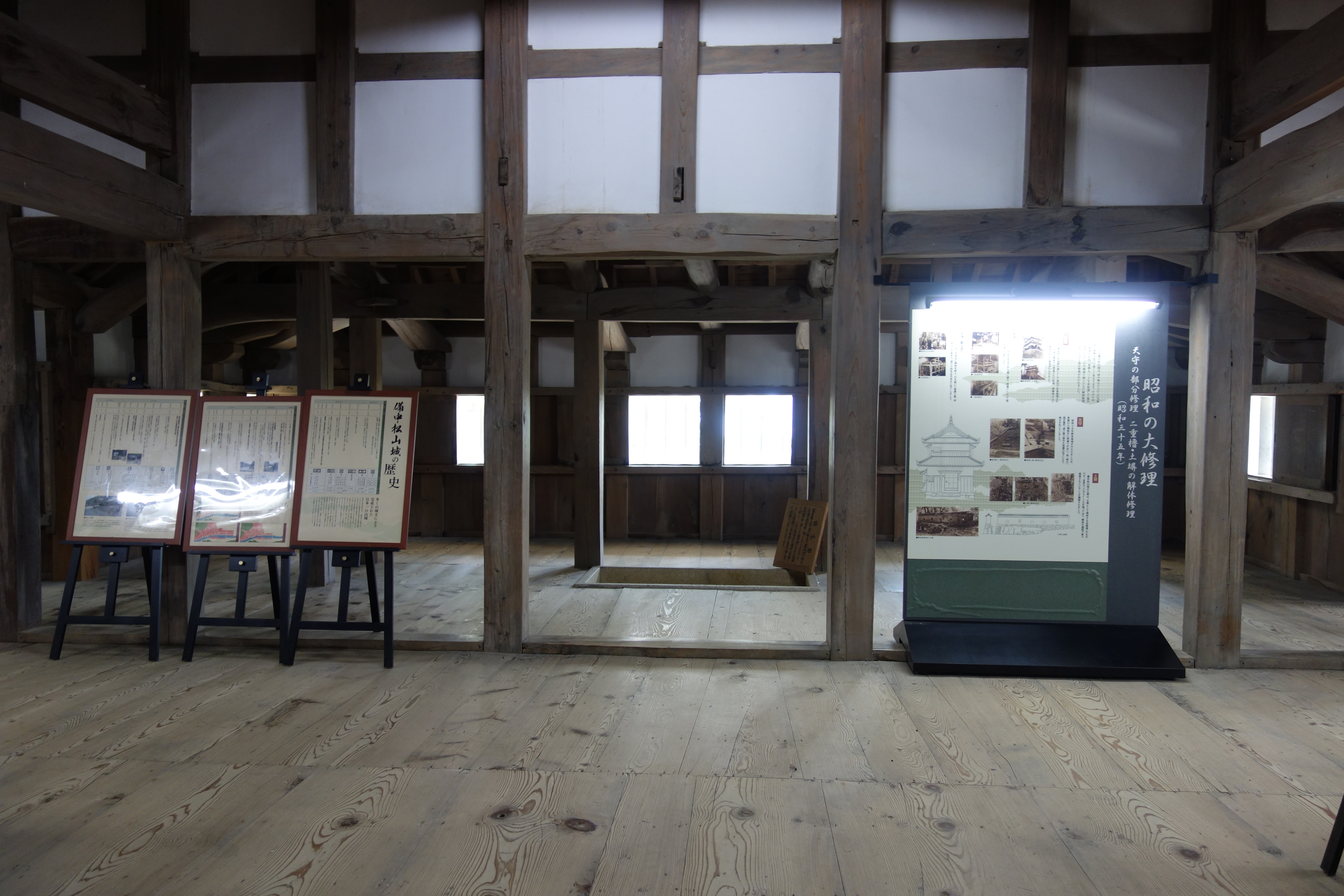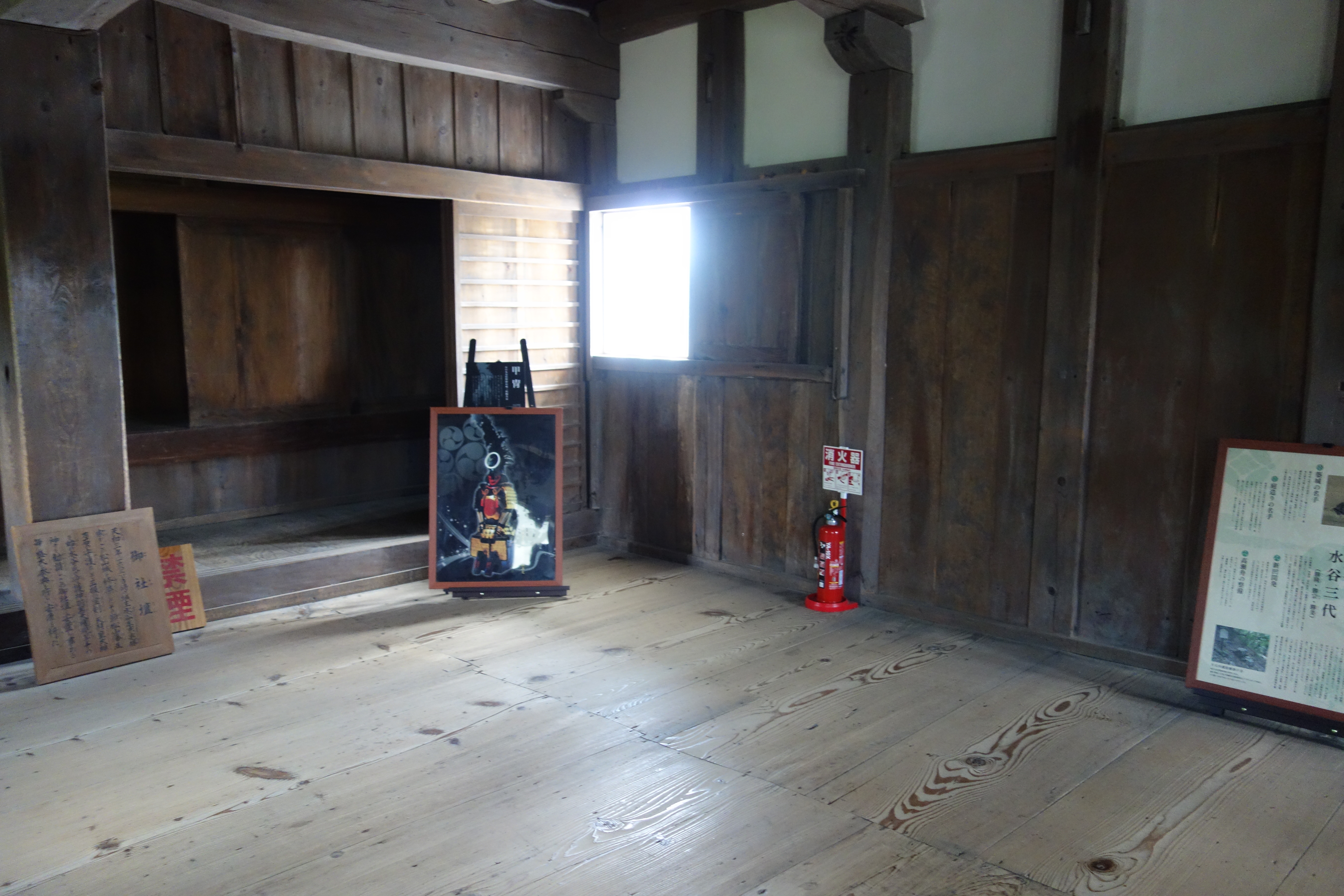 天守内部(二階) 甲冑の絵(?)の展示は少々違和感。 |