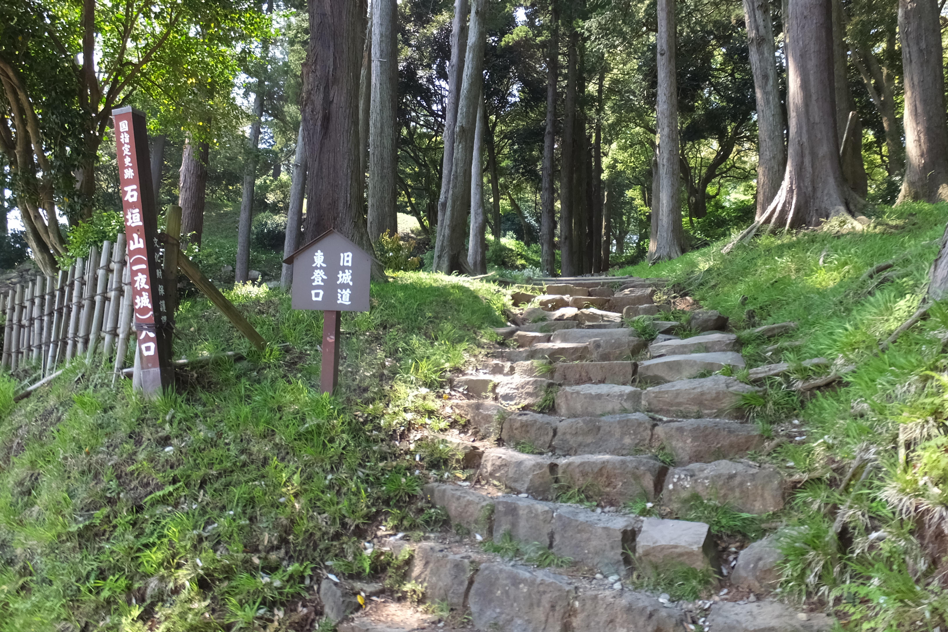 石垣山一夜城の看板に沿って進むと道路右側に公園の碑 直ぐ左は駐車場 |
