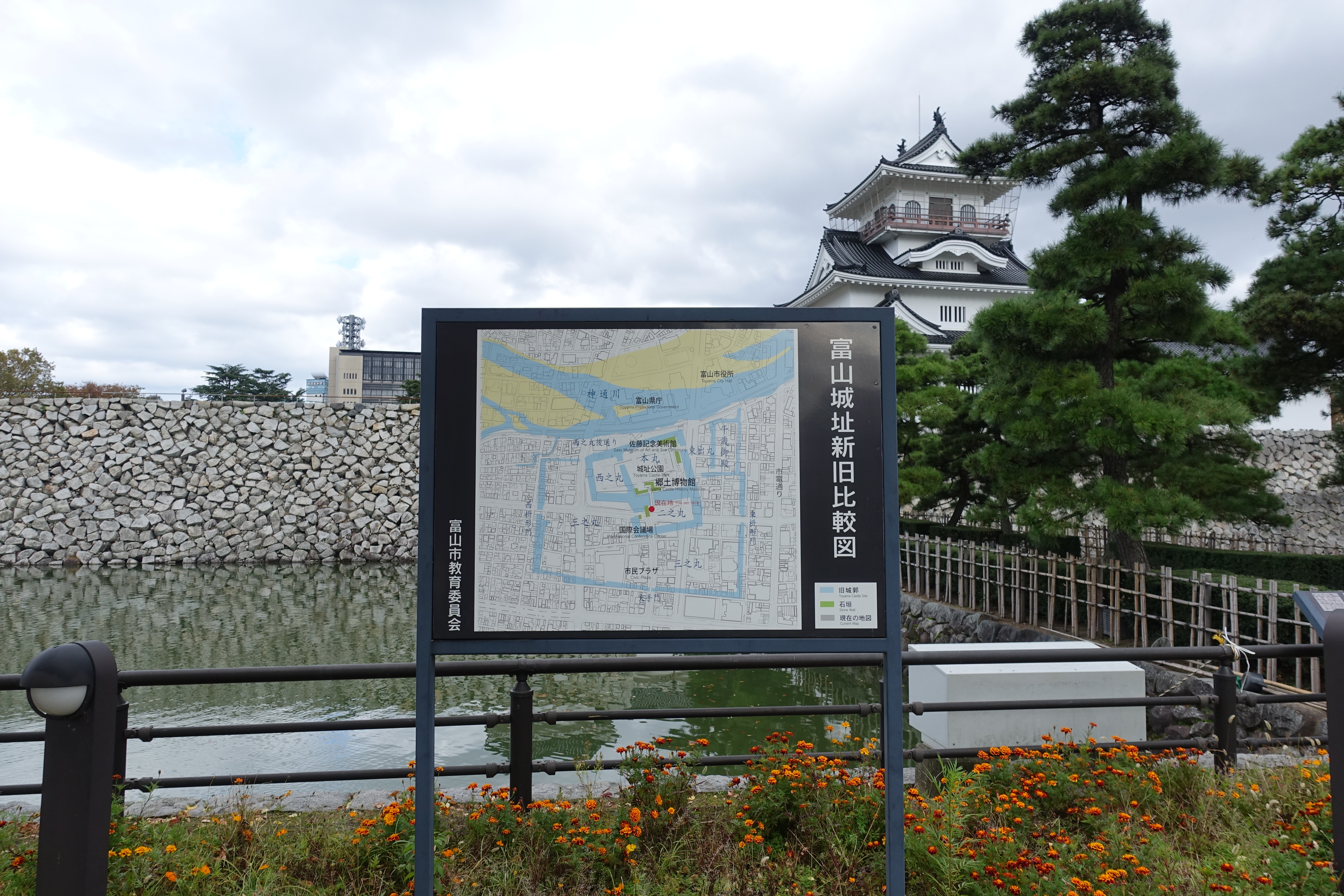 築城時は北側の神通川を含め四方を水堀で囲む平城。
