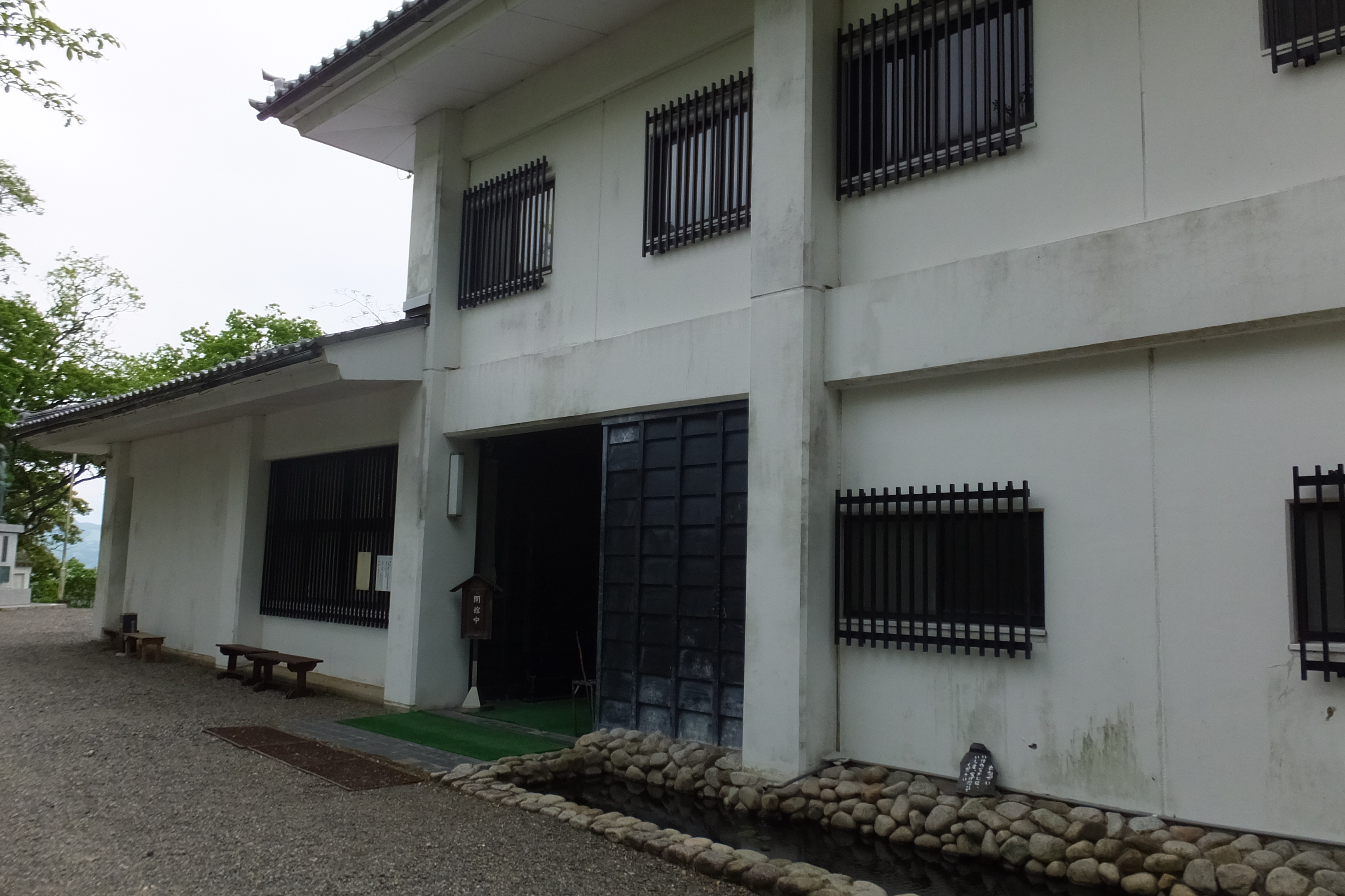 程なく、本丸入口に至り、模擬天守が迎えてくれます。 模擬天守は、モニュメント的に三重の屋根となっています。 形状は元の二重三階の形式を踏襲して欲しかったと、少々残念感が残りました。